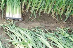 发表时间:2021-08-20 17:11 1、韭葱是以产蒜苗和蒜苔为主的珍稀奇特蔬菜新品种,又名海蒜、洋蒜苗、扁叶葱。百合科葱属,两年生草本植物。原产欧洲中南部,19世纪末传入我国,由于叶片、假茎,花苔均可食用,且含有丰富的碳水化合物,多代替蒜苗食用或供脱水加工后出口外销,经济效益十分显著。1992年,我所从国外引进“美国花旗韭葱”,8年来先后在福建、广西、贵州、四川、上海、浙江、湖北、湖南和陕西等地累计推广面积达 9.75万亩,倍受菜农和消费者的欢迎。现将其特征特性及栽培技术介绍如下。 2、特征特性 3、生长势强,株高约70厘米,假茎洁白如葱,叶身扁平似蒜,叶片长披针形,单叶互生,外有蜡粉,宽 2.50-5厘米,长30-50厘米,圆状叶鞘套生成假茎,外皮膜质,白色,蒜苔实心,断面圆行,基部粗 1厘米,长80厘米。耐寒适应性广,能忍耐38℃高温和—10℃的低温,生长适宜的昼温为18-22℃,夜温为12-13℃;根系分布较浅,不耐干旱,也不耐涝,生产上必须及时灌水和排涝;韭葱属绿体春化类型,从营养生长转入生殖生长,需在4-5片叶的幼苗期,经过较长一段时间的5- 8℃低温,花芽分化,再遇到长日照,在18-20℃条件下抽生花苔,花苔为伞形花序,外有总苞,开花时总苞单侧开裂脱落,有小花 800-3 000朵,淡紫或粉红色,花丛生成球,鲜艳美观。种子有棱,黑色,千粒重2.80克左右。播种后可连续收7-8年(收获情形和韭菜相同),亩可年产蒜苗和蒜苔6 500-8 000千克。 4、栽培要点 5、 适期播种 以采收一年生成株为目的进行生产,北方地区一般 3月中旬育苗,6月上中旬定植,10月下旬收获。育苗前整地施基肥,按栽亩韭葱需育苗畦100-130平方米,做长6-8米,宽1- 1.50米的育苗畦,在畦面浇透水,水渗下后均匀撒播种子,覆土1厘米厚。以采收蒜苗为目的进行生产可在春末夏初播种,当年即可收获嫩苗上市。 6、 培育壮苗播种后经常保持表土湿润,以利出苗,苗出齐后在畦面撒1层过筛的细土,保墒和促进发根,遇到干旱可灌水,保持见干见湿,并及时除草。幼苗3-4片叶时,结合灌水,每亩追施硫酸铵10千克,促进其迅速生长,密集的苗应及时间苗,发现有徒长趋势应控制灌水,定植前1-2天灌1次水,便于起苗。 7、 合理密植 清除前茬作物残株及杂草,平整土地,每亩撒施农家肥5000-7000千克,深施细耙,使粪土掺和均匀,做成1米宽的畦,每畦按20厘米行距栽3行,每行并排栽3株,达到株距7厘米,每平方米可栽苗126株,每亩栽苗8.40万株,定植深度以不埋到心叶为宜,定植后立即灌水。这种定植方式由于密度大,单株较小,靠群体增产。 8、 定植后的管理 当心叶开始生长时,灌1次水,并在表土干湿适宜时进行松土,促进根系生长,7、8月份温度较高,降雨量大,除了保持见干见湿外,雨后还要及时排水防涝。9月份以后,气候条件适宜,生长迅速旺盛,应及时灌水追肥,经常保持土壤湿润,结合灌水进行追肥,进入旺盛生长期每亩追施尿素10千克,半月后再追施尿素10千克。并培土两次,软化假茎,提高产量品质。 9、花苔的生产栽培 韭葱的花苔与蒜苔非常相似,其花苔除了辣味稍淡,总苞较小外,从形态和营养成分上都与蒜台无大差异,可做为蒜苔上市。 10、专门生产花苔,在露地可以安全越冬的地区,秋季播种,采取与大蒜栽培密度相同的畦作,冬季灌冬水,保证安全越冬。春季萌发生长以后,由于已经通过春化阶段,5月份遇到高温长日照,很快抽苔。当花苔生长到一定程度,品质产量达成**时,贴地面割下,剥掉叶片和叶鞘,即可捆把上市,其产量高于蒜苔的产量。这种生产方式成本较低,效益较高。